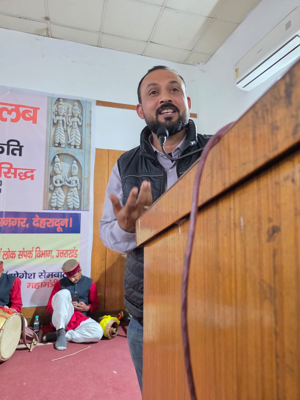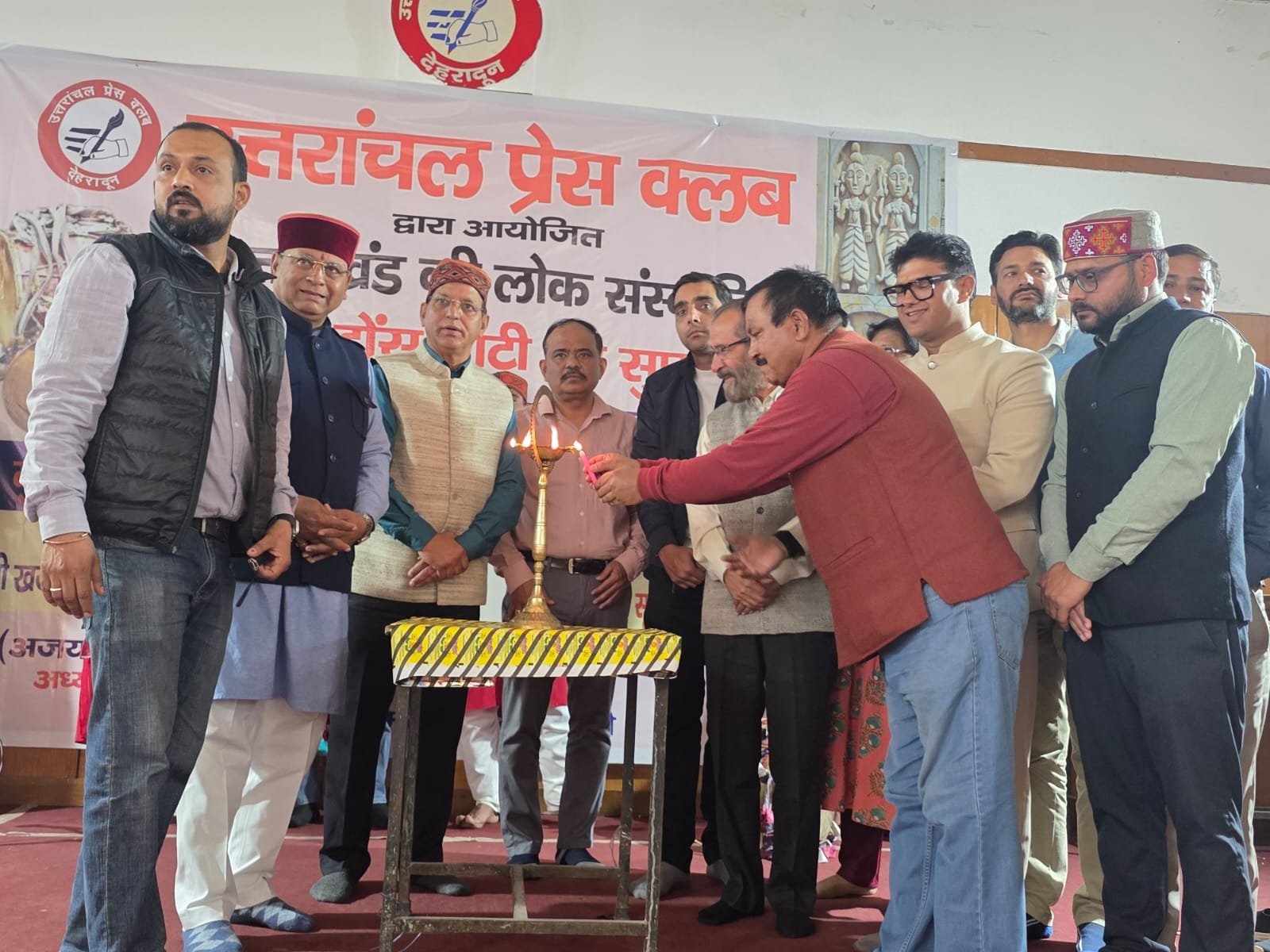 कार्यक्रम का संचालन प्रेस क्लब के महामंत्री योगेश सेमवाल एवं लोक कलाकार व लोक विधाओं के पुरोधा नंदलाल भारती ने संयुक्त रूप से किया।